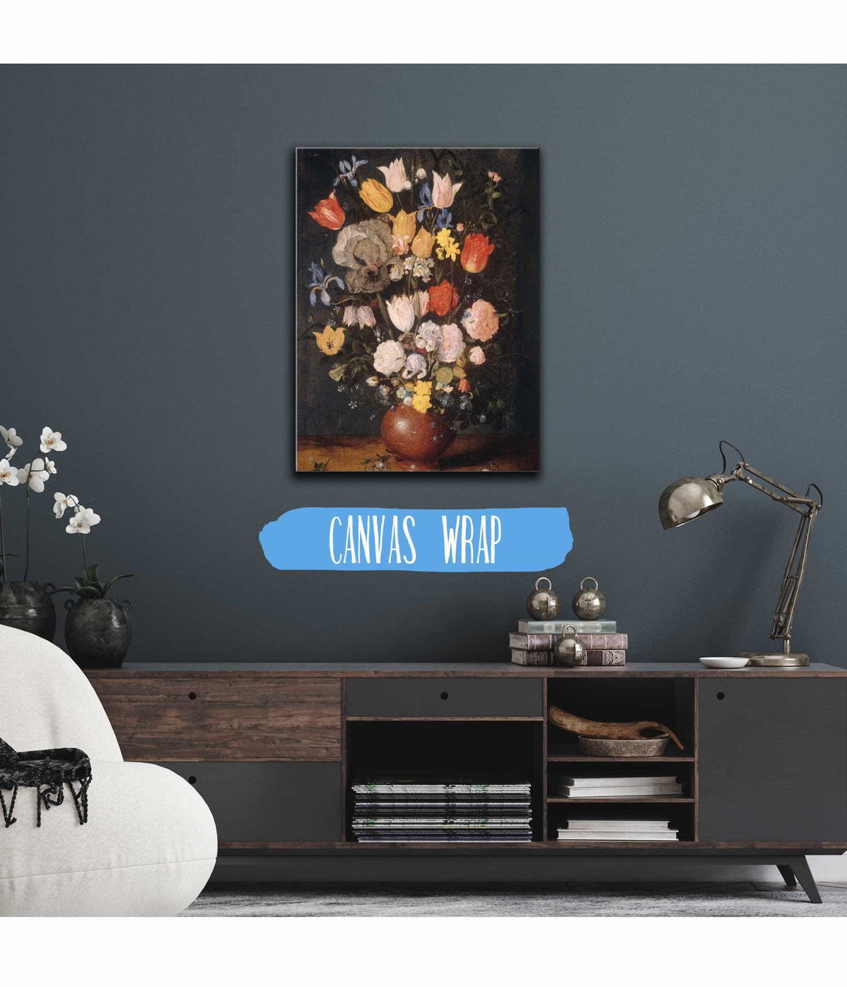 Stretched Canvas: Ready to hang with neatly finished edges and solid wood support.